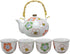 • Beauty and elegance are presented in the design of this earthenware teapot set. With the base color of pure white, the teapot is adorned with beautiful colorful blooming flowers. The teacups are matching in design, making this teapot set a delightful decor, serve-ware for tea time, or gift for any occasion!