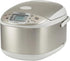 This 10-cup rice cooker and warmer makes 20 cups of cooked rice and includes a variety of cooking functions including white rice/sushi, mixed rice, porridge, sweet, brown, cake, steam, and quick cooking. This unit uses a black thick inner cooking pan that provides even heating for better cooking and has an interchangeable melody and beep signal to indicate when the cooking cycle has ended.